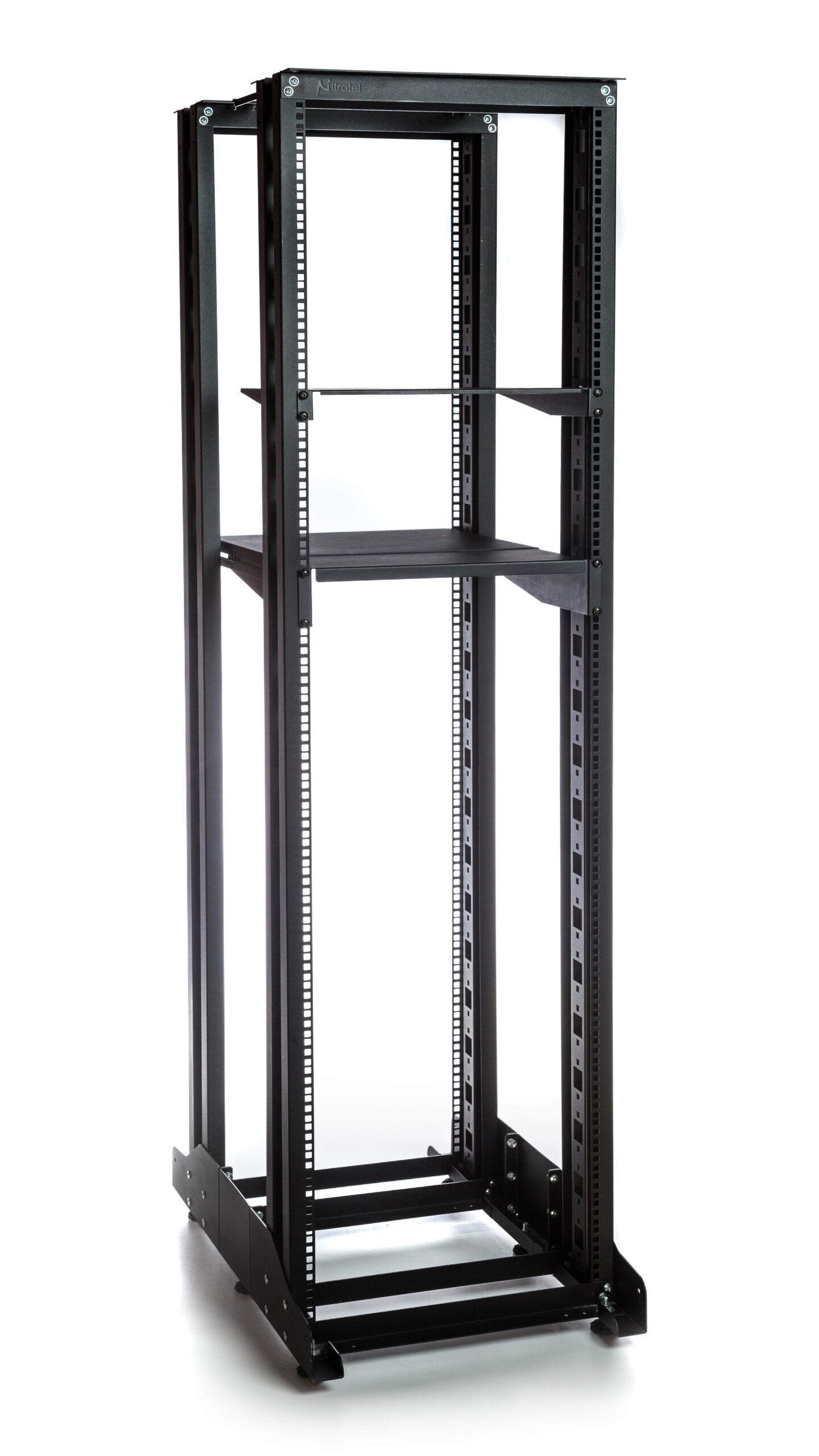 Nitrotel Four Post Rack come in 22, 28, 42 & 45U X 800mm, SPCC, Cold Rolled Steel, 24″-36″ Adjustable Depth, Finished with Electrostatic Paint, Color Black RAL 9005