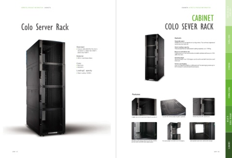Strengthened fixed shelves divide the rack into 4 sections The opening angle of front door is over 130 degrees. Each separated space with a vertical cable manager.